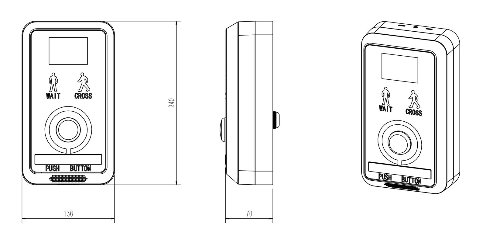 แสดงสถานะ | ก. การนับถอยหลังสีแดงและสีเขียว ข. รูปแบบการจอดรถสำหรับคนเดินเท้าสีแดง ค. รูปแบบทางเท้าสีเขียว d. กดปุ่ม ไฟสีเหลืองกะพริบ |